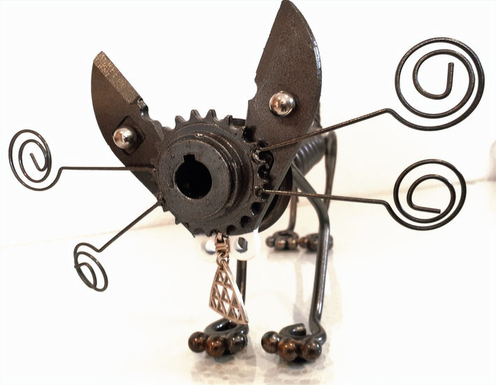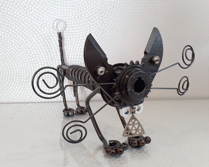 C'est notre chatte JOKER, du moins sa représentation métallique rigolote et amusante.
