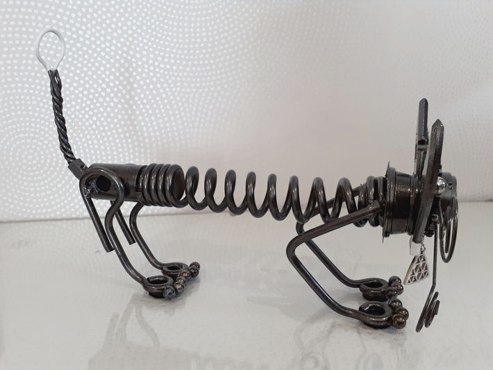 Fidèle à son image, avec son ressort et sa queue enroulée, elle incarne une essence dynamique, rappelant que même dans un monde parfois rigide, il y a toujours de la place pour l'humour et l'originalité. Un petit clown de métal, plein d'énergie et de gaieté.